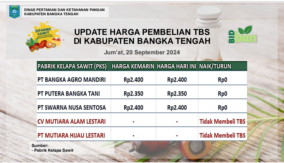 Update Harga Tandan Buah Segar (TBS) 20 September 2024
