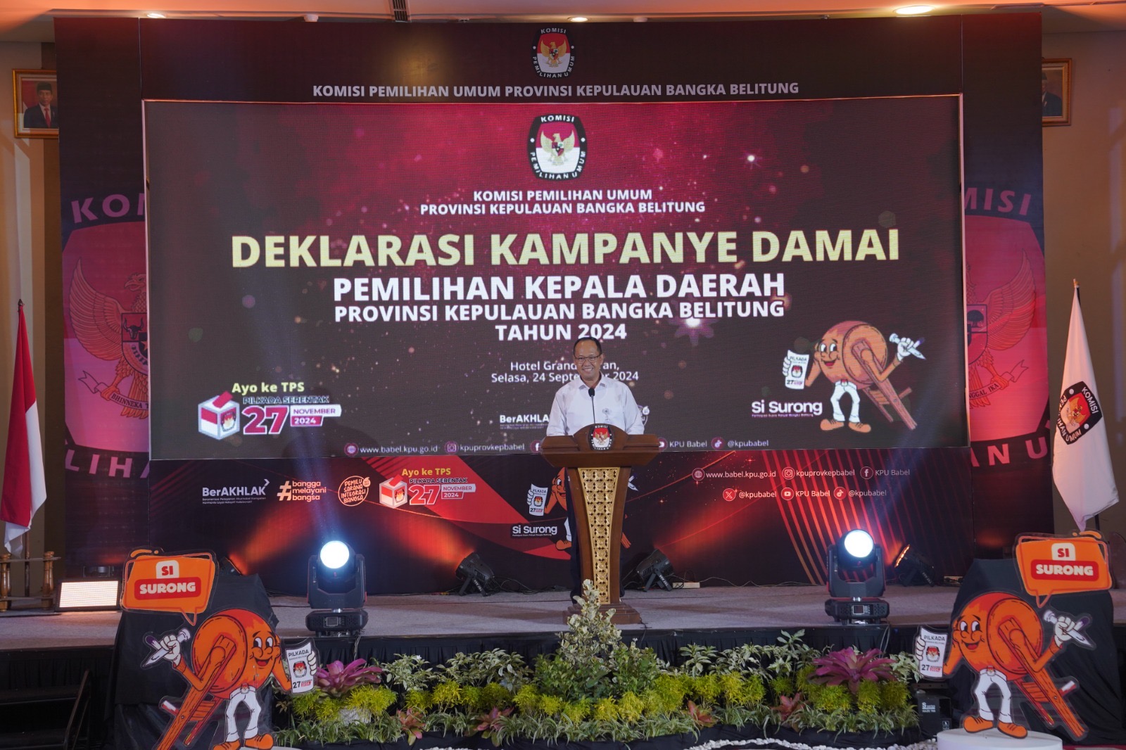Hal ini dikatakannya pada kegiatan Penandatanganan Pakta Integritas Melalui Deklarasi Kampanye Damai Pemilihan Kepala Daerah Provinsi Kepulauan Bangka Belitung Tahun 2024 di Hotel Grand Safran, Pangkalpinang Selasa (24/09/2024).