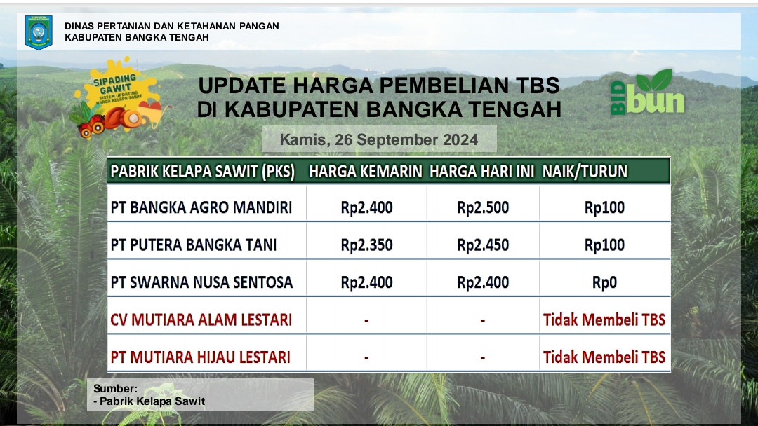 Update Harga Tandan Buah Segar (TBS) 26 September 2024