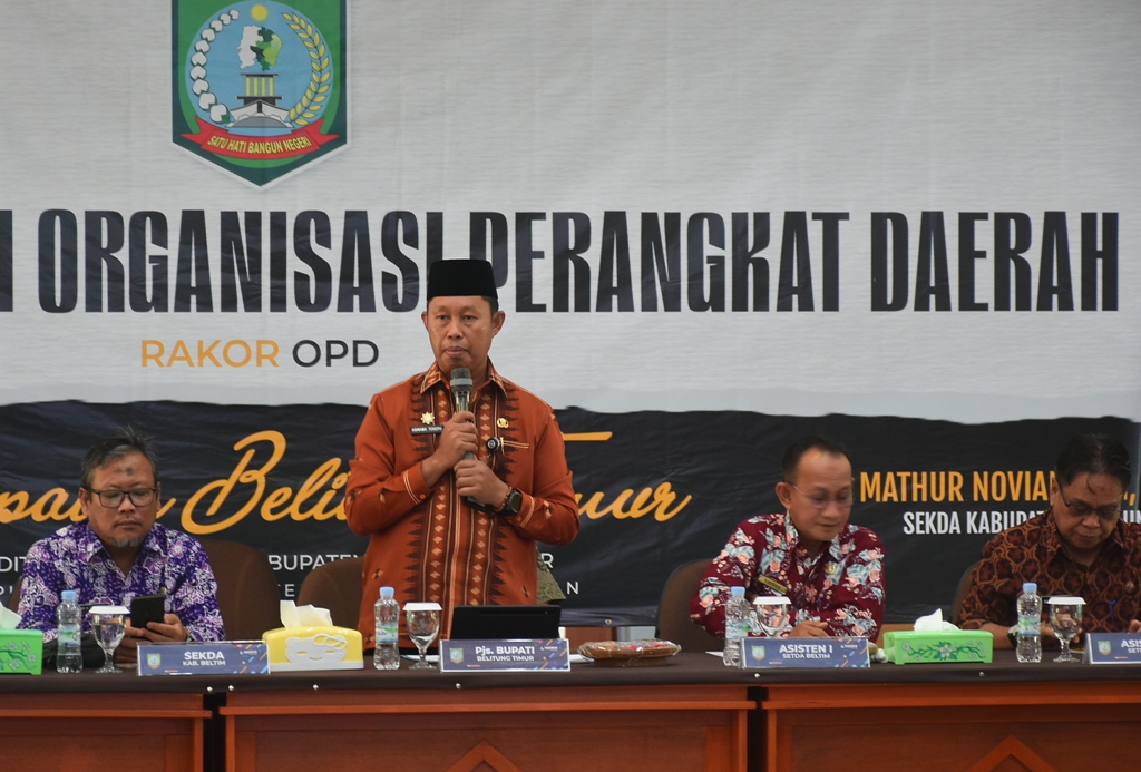 Manggar, DiskominfoSP Beltim – Penjabat Sementara (Pjs) Bupati Belitung Timur, Asmawa Tosepu langsung memimpin Rapat Koordinasi Organisasi Perangkat Daerah (OPD) di Auditorium Zahari MZ, Kamis (3/10/24). Ini adalah kegiatan pertamanya sebagai Pjs di hari pertamanya bertugas di Kabupaten Beltim.
