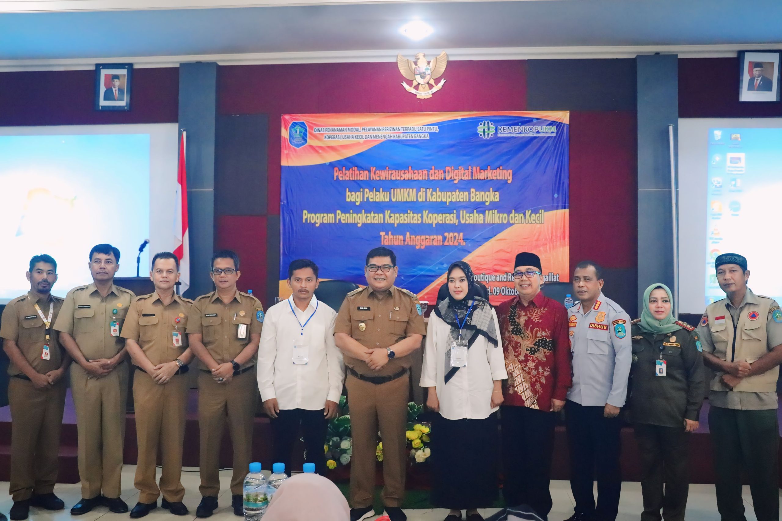 Sungailiat – Pemerintah Kabupaten Bangka melalui Dinas Penanaman Modal, Pelayanan Terpadu Satu Pintu, Koperasi, Usaha Kecil Menengah menggelar Pelatihan Kewirausahaan dan Digital Marketing Bagi Pelaku UMKM.