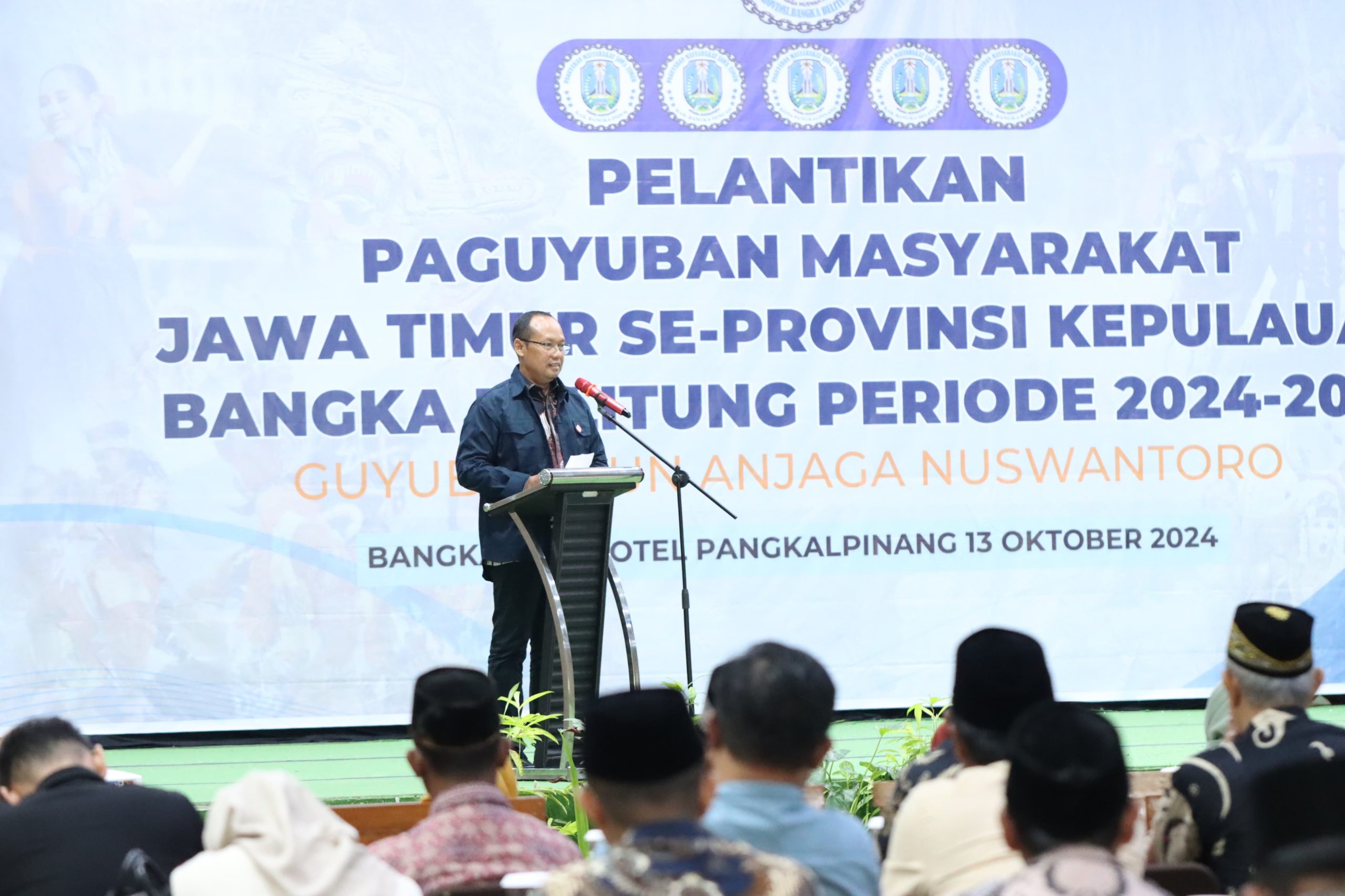 Hal itu di tuturnya saat memberikan sambutan di acara pelantikan pengurus baru untuk Paguyuban Masyarakat Jawa Timur di Babel periode 2024-2029 yang berlangsung di Bangka City Hotel, Minggu, (13/10/2024).