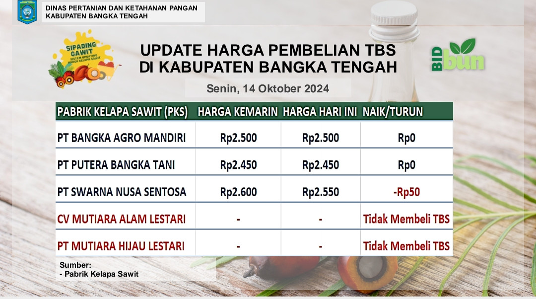 Update Harga Tandan Buah Segar (TBS) 14 Oktober 2024