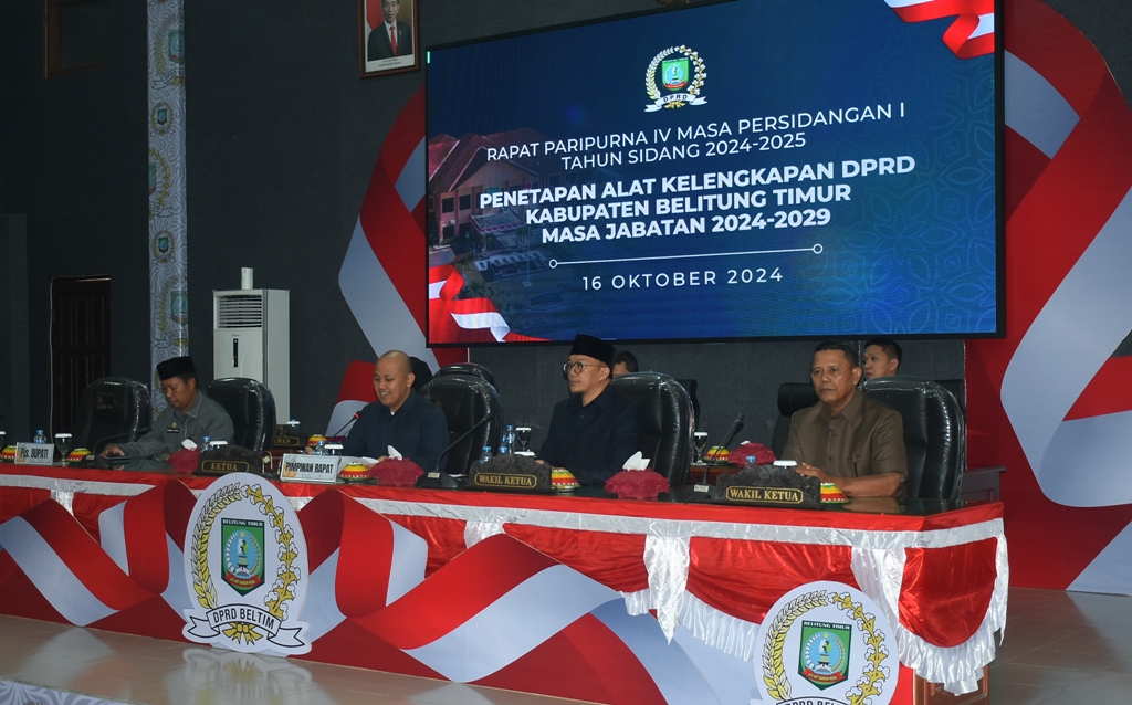 Pengesahan Penetapan Susunan AKD berlangsung dalam Rapat Paripurna IV Masa Persidangan I Tahun Sidang 2024-2029, Rabu (16/10/24). Pengesahan ditandai dengan penandatanganan Surat Keputusan AKD DPRD Beltim Masa Bakti 2024-2029 oleh Ketua DPRD Beltim, Fezzi Uktolseja di Ruang Sidang DPRD Beltim.