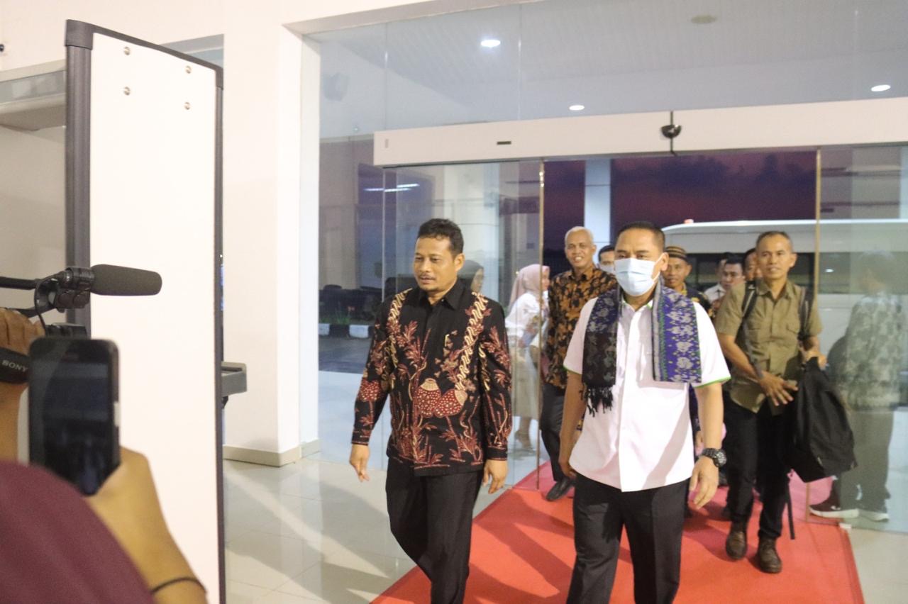 PANGKALPINANG – Wakil Menteri Agama (Wamenag) RI Saiful Rahmat Dasuki tiba di Pangkalpinang Kamis (17/10) pukul 18.00 waktu setempat. Disambut Penjabat (Pj) Sekretaris Daerah (Sekda) Kepulauan Bangka Belitung (Babel) Fery Afriyanto, Wamenag Saiful Rahmat beserta rombongan berbincang seputar kesiapan rangkaian kunjungan kerja, diantaranya ialah groundbreaking atau peletakan batu pertama Sekolah Tinggi Agama Khonghucu Indonesia Negeri (STIAKIN) Kepulauan Bangka Belitung.