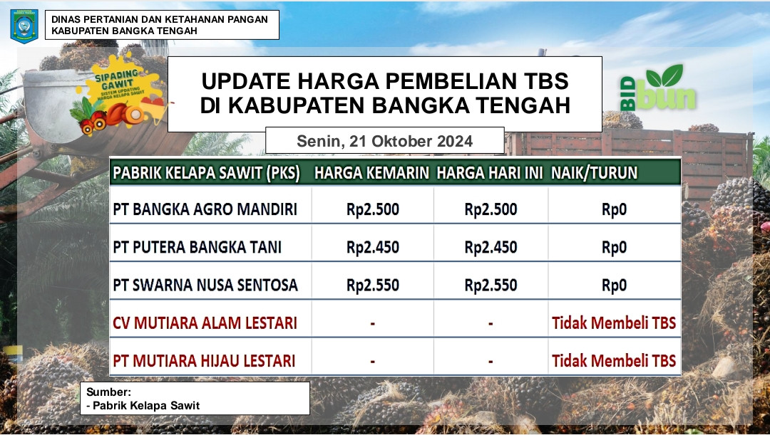 Update Harga Tandan Buah Segar (TBS) 21 Oktober 2024