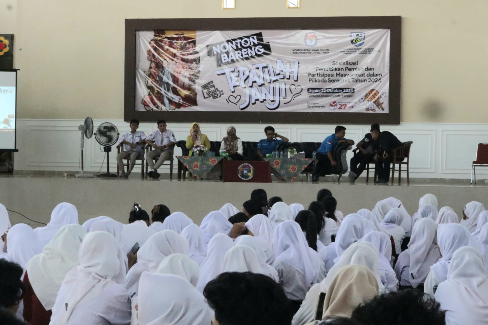 “Sosialisasi pendidikan pemilih pemula ini digelar dengan tema nonton bareng film “Kejarlah Janji”. Moment ini digelar untuk mengajak pemilih pemula untuk berpartisipasi menggunakan hak pilihnya,” kata Asrikah kepada Diskominfo SP Beltim.