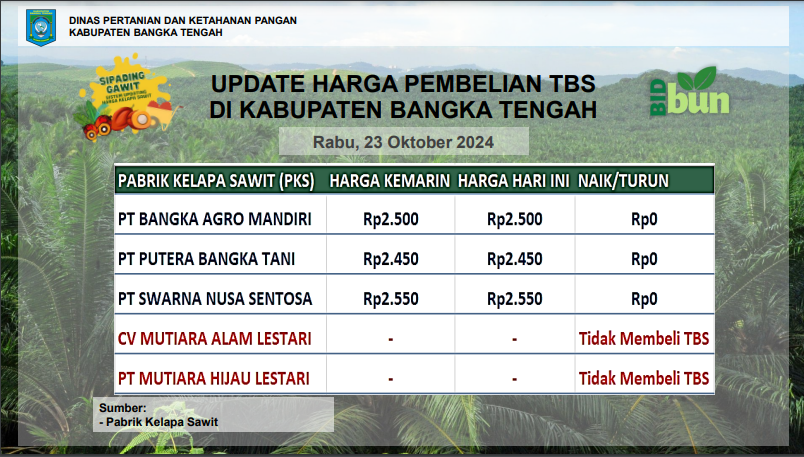Update Harga Tandan Buah Segar (TBS) 23 Oktober 2024