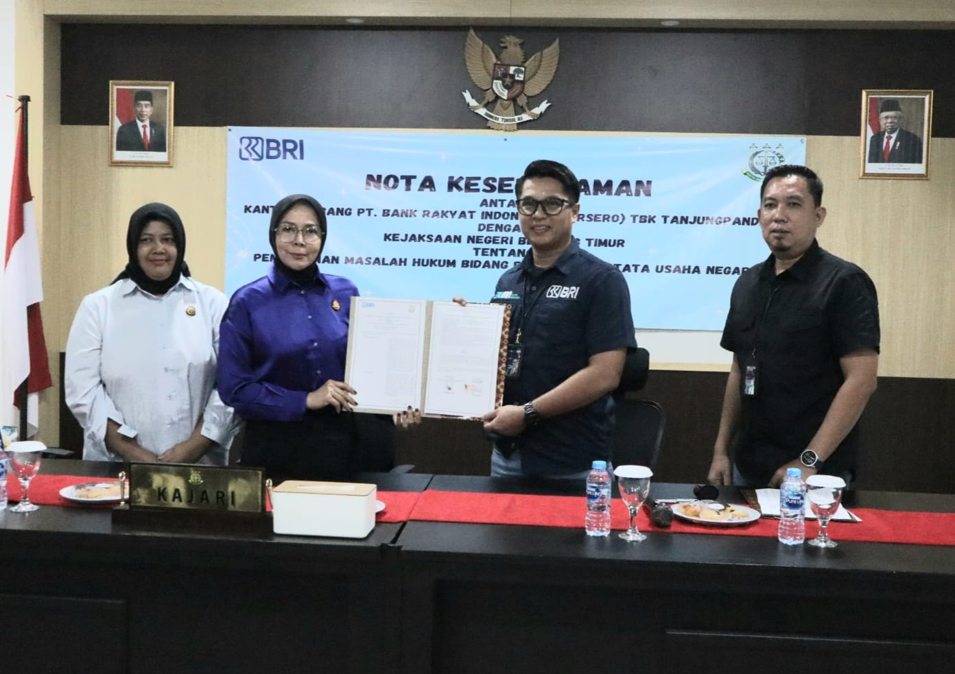 Penandatanganan tersebut dilakukan oleh Kepala Kejaksaan Negeri Dr. Rita Susanti dan Pemimpin PT. Bank Rakyat Indonesia (Persero) Tbk Cabang Tanjungpandan Ridho Yamina Putra di Kantor Kejaksaan Negeri Beltim, Kamis (24/10) sore.