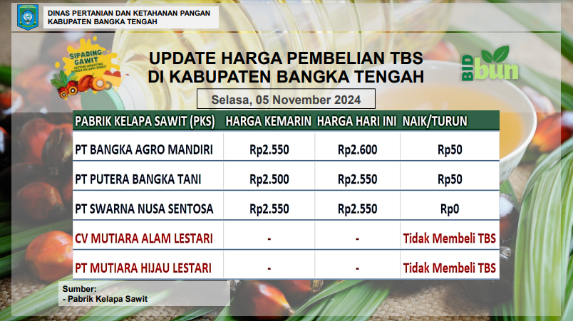 Update Harga Tandan Buah Segar (TBS) 05 November 2024