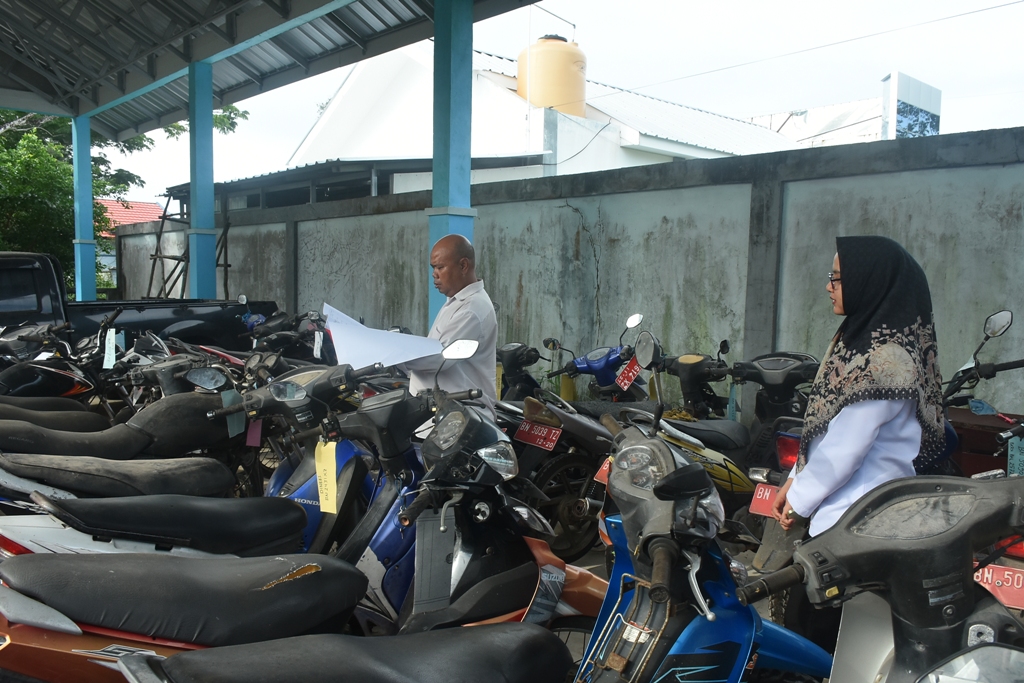 Semua barang milik daerah yang akan dilelang berada di Gudang Aset BPKPD. Beberapa peserta lelang juga tampak melihat-lihat kondisi barang atau kendaraan yang ingin ditaksirnya.