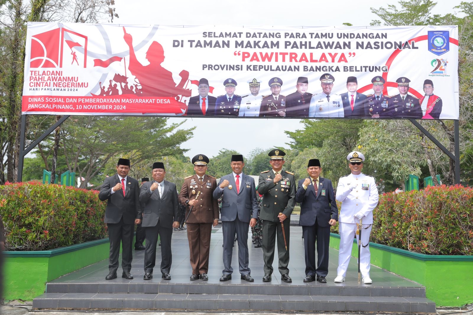 PANGKALANBARU – Peringatan Hari Pahlawan ke-79 di Provinsi Kepulauan Bangka Belitung (Kep. Babel), pada Minggu (10/11/2024), berlangsung khidmat. Beragam rangkaian dilaksanakan, yang dimulai dengan upacara bendera, di Halaman Kantor Gubernur Kep. Babel.