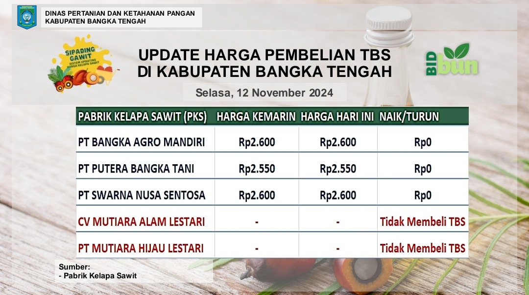 Update Harga Tandan Buah Segar (TBS) 12 November 2024