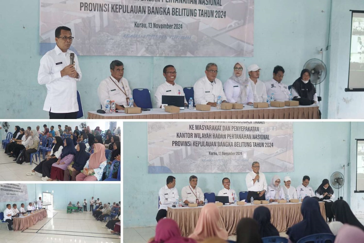 KOBA – Pemerintah Kabupaten Bangka Tengah bersama Kantor Pertanahan Kabupaten Bangka Tengah menggelar Sosialisasi Rencana Konsolidasi Tanah ke Masyarakat dan Penyepakatan Kantor Wilayah Badan Pertanahan Nasional Provinsi Kepulauan Bangka Belitung 2024, di Gedung Serba Guna Desa Kurau, Rabu (13/11/2024).