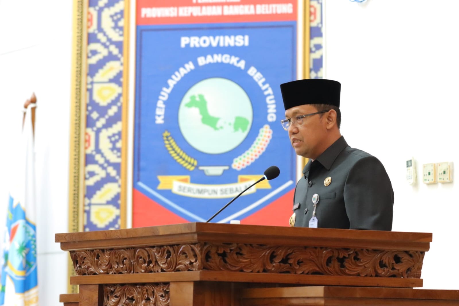 PANGKALPINANG – Penjabat (Pj) Gubernur Kepulauan Bangka Belitung (Kep. Babel) Sugito, menghadiri sekaligus menyampaikan Nota Kesepakatan Kebijakan Umum Anggaran (KUA) dan Prioritas Plafon Anggaran Sementara (PPAS) Anggaran Pendapatan dan Belanja Daerah (APBD) Tahun Anggaran (TA) 2025 pada Rapat Paripurna Penyampaian Nota KUA-PPAS APBD TA 2025, di Ruang Paripurna Kantor DPRD Kep. Babel pada Jumat (22/11/2024).