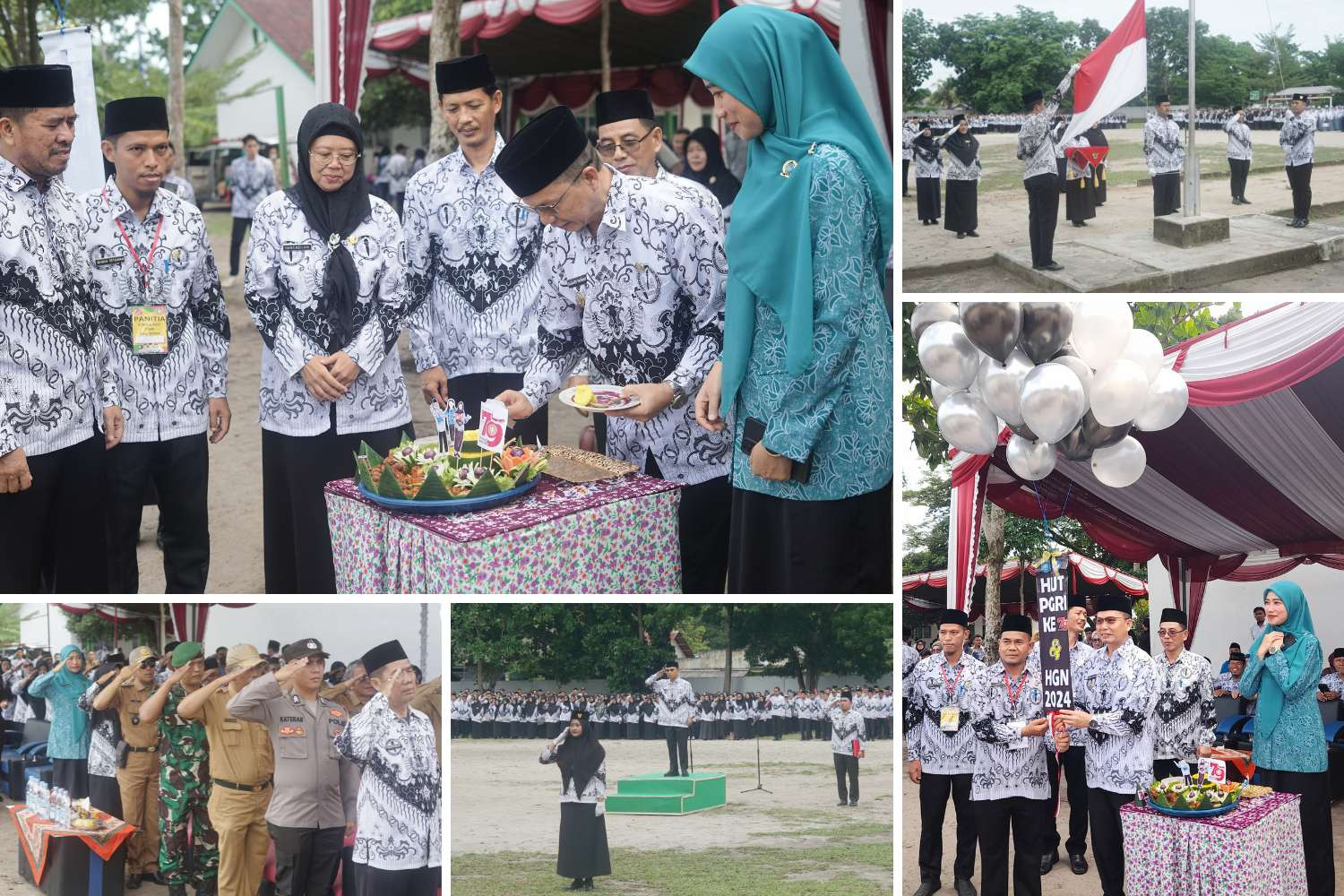 Upacara ini menjadi acara puncak dari rangkaian perayaan HUT PGRI dan HGN yang memang telah rutin dilaksanakan setiap tahun. Hadir sebagai pembina upacara yakni Bupati Bangka Tengah, Algafry Rahman, yang disertai Ketua TP-PKK Kabupaten Bangka Tengah, Eva Algafry.