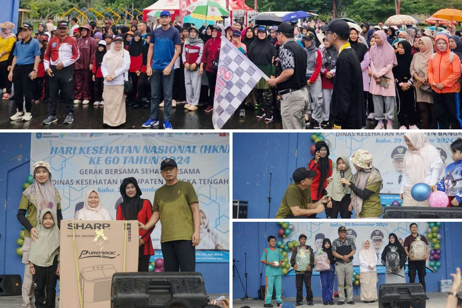 KOBA – Pemerintah Kabupaten Bangka Tengah (Pemkab Bateng) melalui Dinas Kesehatan Kabupaten Bangka Tengah (Dinkes Bateng) gelar jalan sehat dan senam bahagia dalam rangka Hari Kesehatan Nasional (HKN) Ke-60 Tahun, di Alun-Alun Taman Hijau Kota Koba, Jumat (29/11/2024).