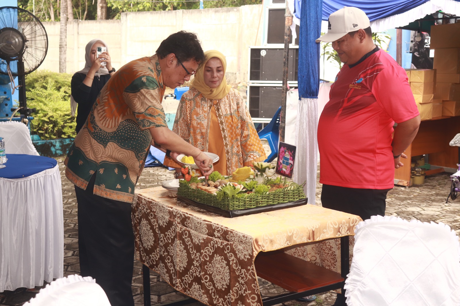 Acara kemudian dilanjutkan dengan pemotongan nasi tumpeng oleh Pj Bupati Bangka didampingi Kepala Perumda PDAM Tirta Bangka dan segenap tamu undangan lainnya.