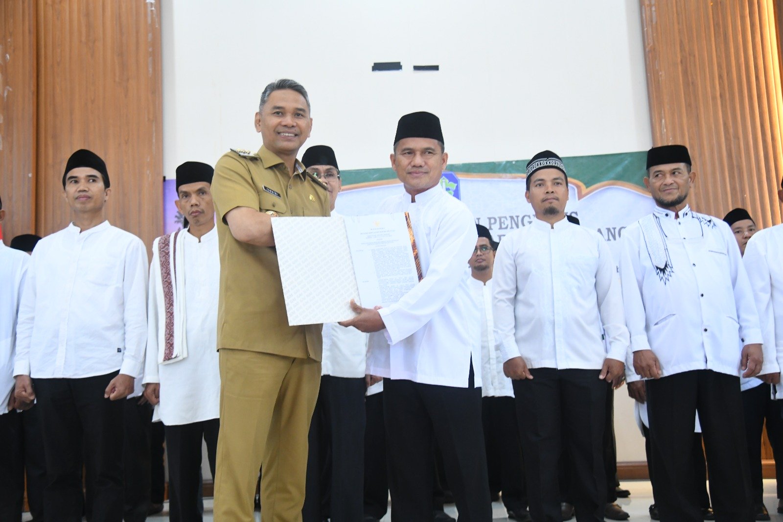 Pengukuhan Badan Pengurus Masjid Agung Sungailiat periode 2025 – 2028, Selasa (11/2/2025) di Graha Maras, Setda Bangka