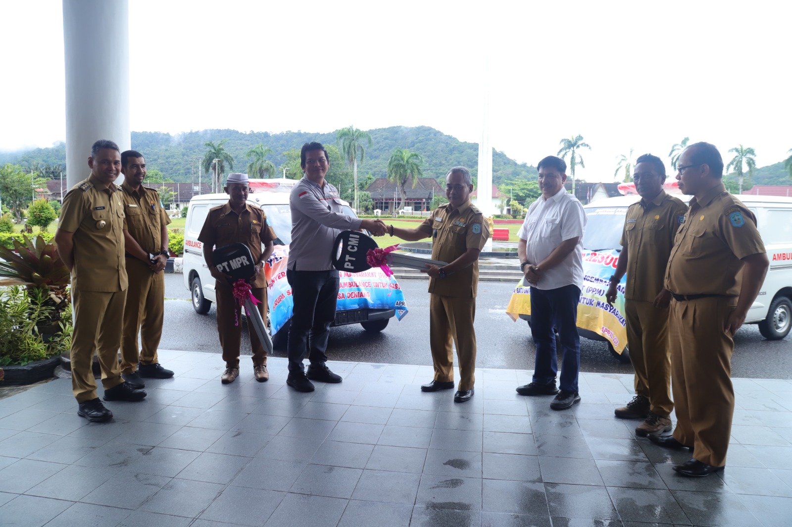Penyerahan Bantuan Mobil Ambulan untuk Desa Cit dan Desa Deniang, dari PT. Cinta Mapur Indonesia dan Mitra Persada Resource, Selasa (15/04/25) di Halaman Kantor Bupati Bangka.
