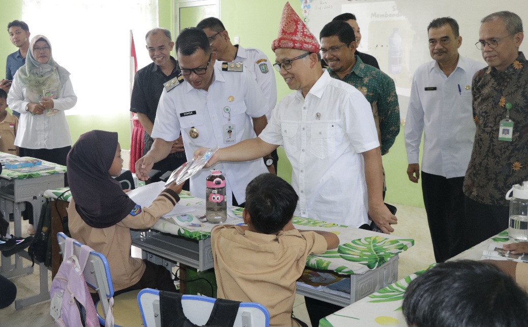Tanjungpandan, Media Center – Wakil Menteri Pendidikan Dasar dan Menengah Republik Indonesia, Atip Latipulhayat kunjungi SD N 19 Tanjungpandan, rabu (16/04/2025) didampingi Wakil Bupati Belltung, Syamsir. Kunjungan ini dilakukan dalam rangka memantau proses pembelajaran siswa.