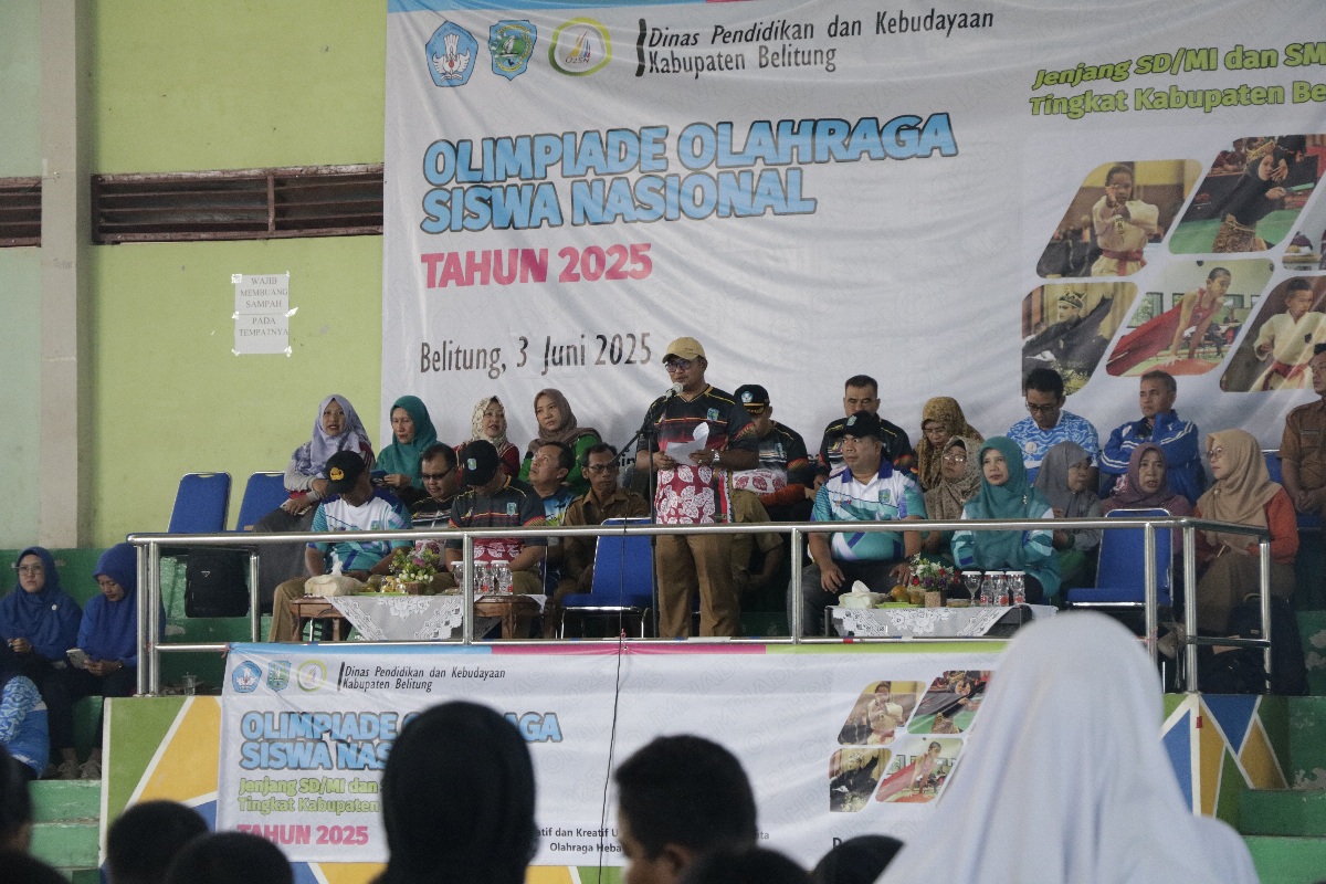Tanjungpandan, Media Center – Dinas Pendidikan dan Kebudayaan Kabupaten Belitung menggelar Olimpiade Olahraga Siswa Nasional (O2SN) tingkat SD/MI dan SMP/MTS tahun 2025 se-Kabupaten Belitung. Pembukaan seleksi dilakukan di Gedung Olahraga Pangkal Lalang, Selasa (03/06/2025).