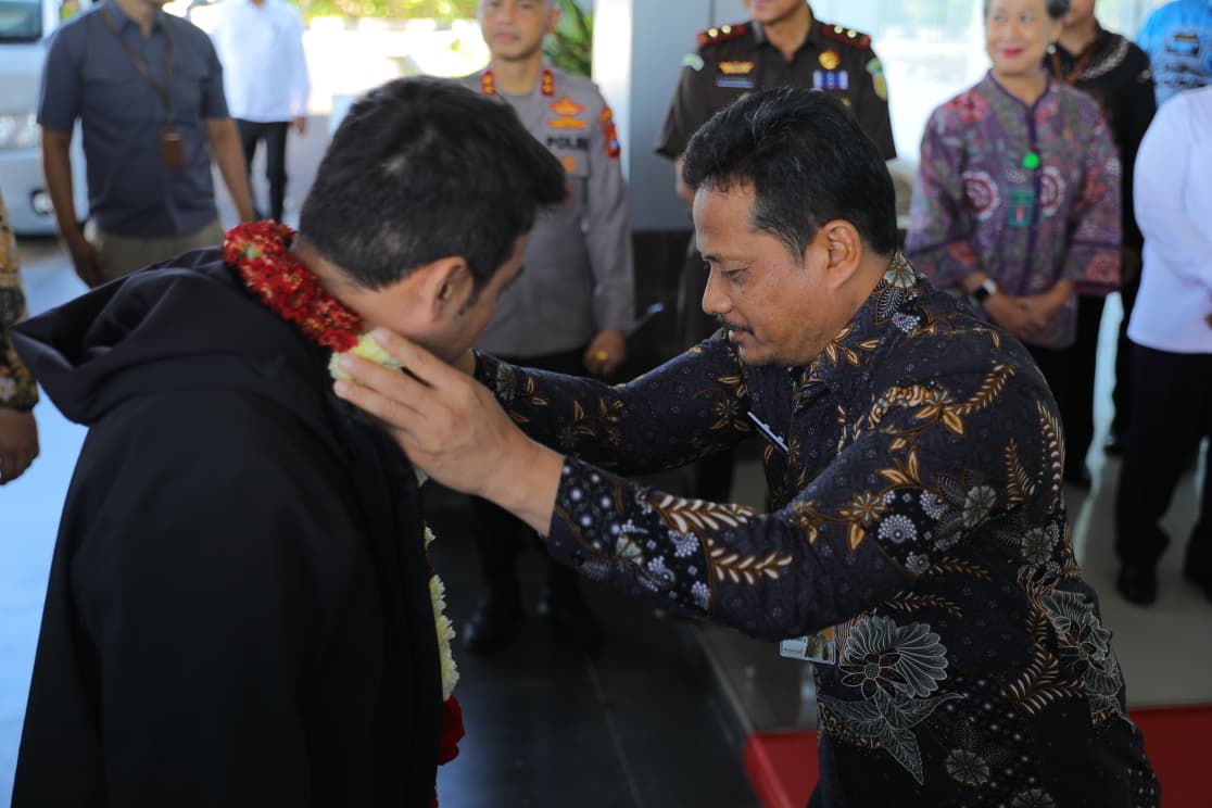“Selamat datang di Negeri Serumpun Sebalai,” kata Sekda Fery sambil mengalungkan bunga kepada Wakil Ketua Komisi III DPR RI tersebut.