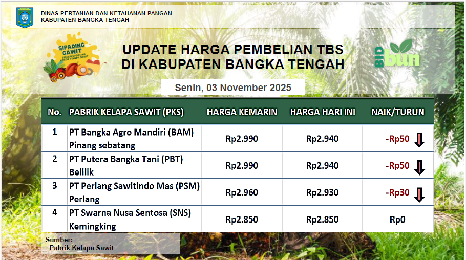 Update Harga Tandan Buah Segar (TBS) 03 November 2025