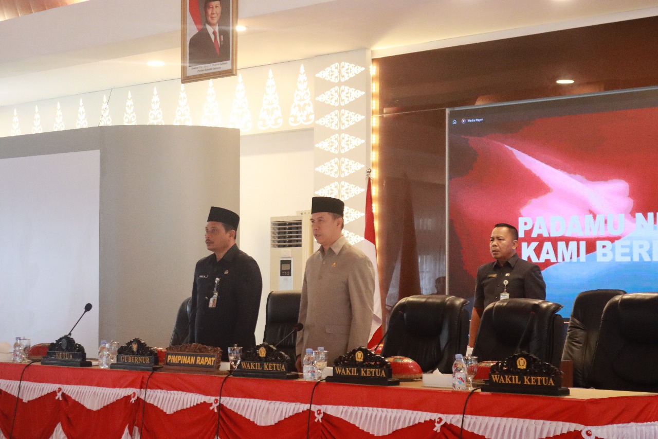 Rapat paripurna yang berlangsung di Gedung Mahligai Rumah Dinas Gubernur Babel ini dipimpin oleh Wakil Ketua DPRD Eddy Iskandar, dan dihadiri oleh unsur Forkopimda, instansi vertikal, serta jajaran perangkat daerah di lingkungan Pemerintah Provinsi Babel.