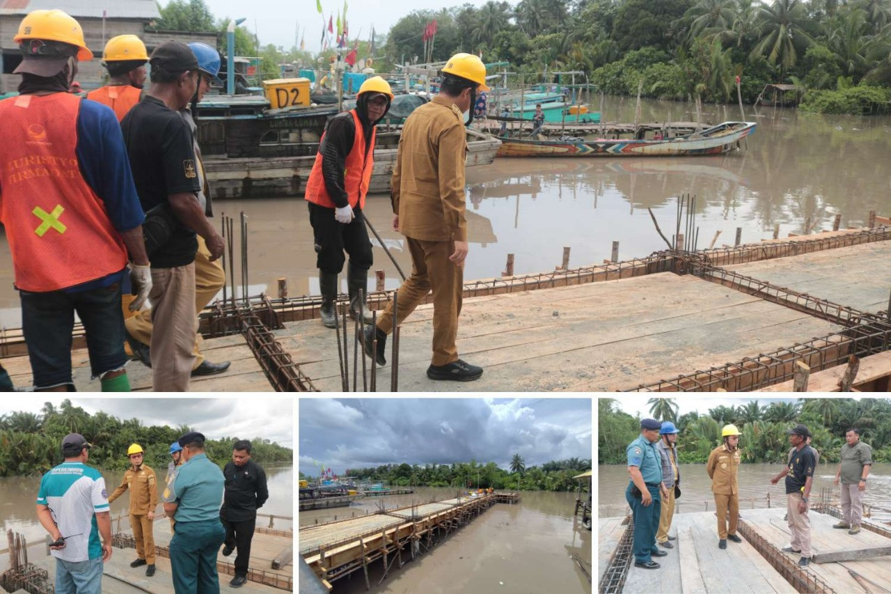 SUNGAISELAN – Bupati Bangka Tengah, Algafry Rahman, didampingi Kepala Dinas Perikanan dan Babinpotmar meninjau perkembangan pembangunan dermaga bongkar muat nelayan yang berada di Kelurahan Sungaiselan, Selasa (11/11/2025).