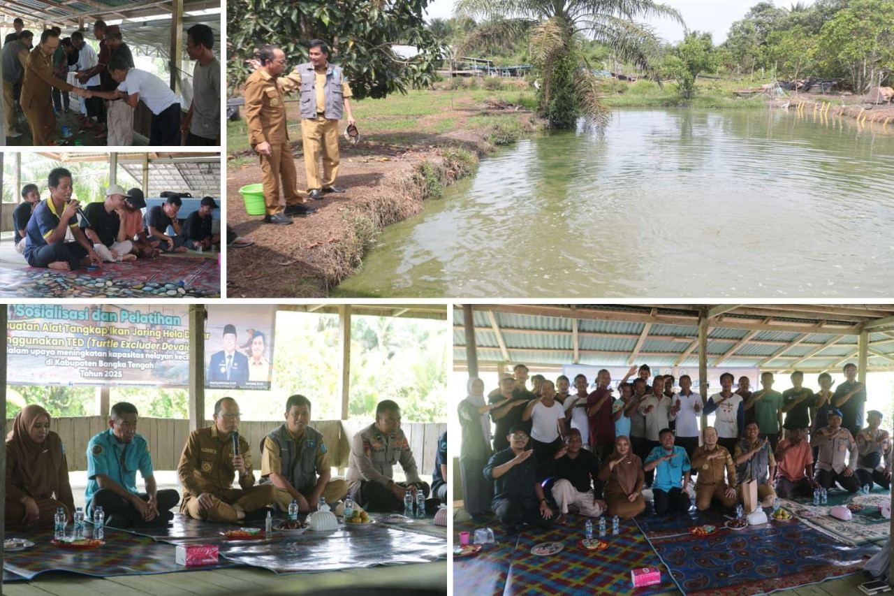 SUNGAISELAN – Dalam upaya meningkatan kapasitas nelayan kecil di wilayah Kabupaten Bangka Tengah (Bateng), Pemkab melalui Dinas Perikanan menggelar sosialisasi dan pelatihan pembuatan alat tangkap ikan hela dasar menggunakan TED (Turtle Excluder Device), bertempat di saung Pokdakan Usaha Mandiri 2, Kelurahan Sungaiselan, Selasa (11/11/2025).