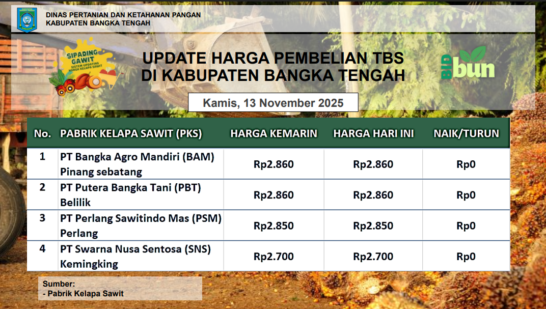 Update Harga Tandan Buah Segar (TBS) 13 November 2025