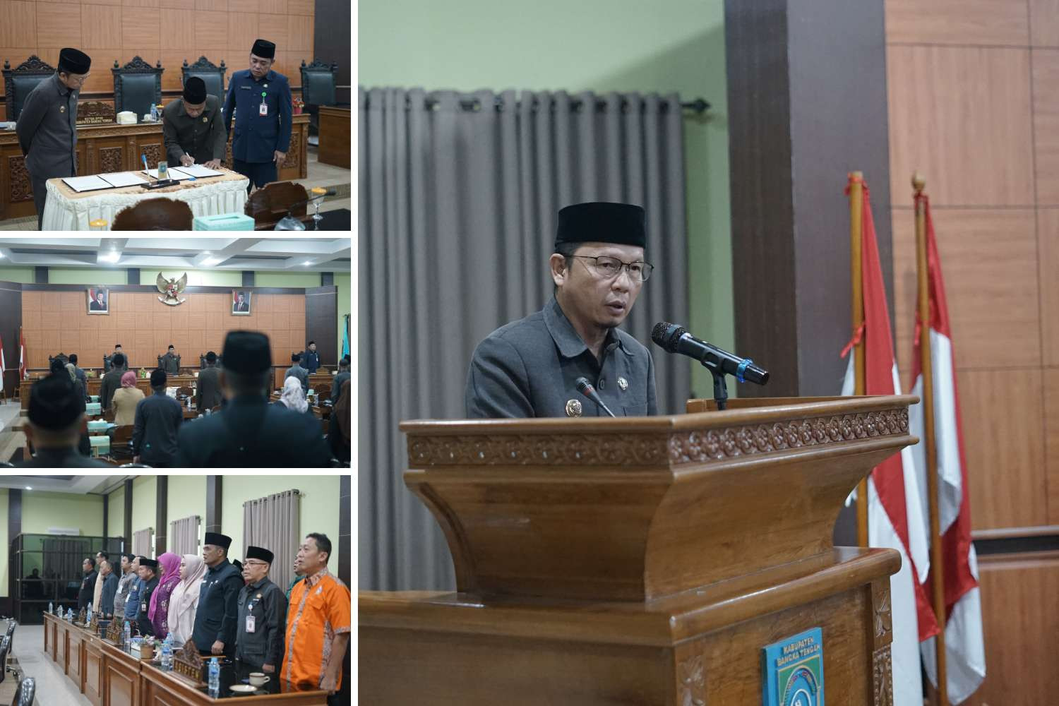 Rapat Paripurna diakhiri dengan penandatanganan bersama berita acara persetujuan antara DPRD dan Pemerintah Kabupaten Bangka Tengah.* Sumber: Diskominfosta Bangka Tengah
