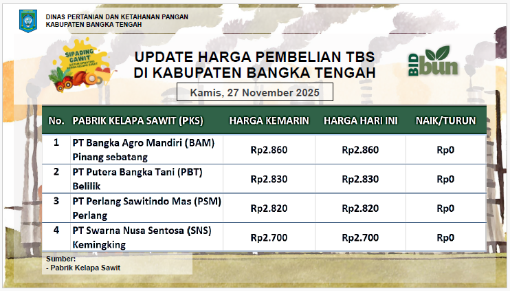 Update Harga Tandan Buah Segar (TBS) 27 November 2025