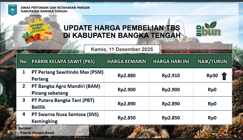 Update Harga Tandan Buah Segar (TBS) 11 Desember 2025