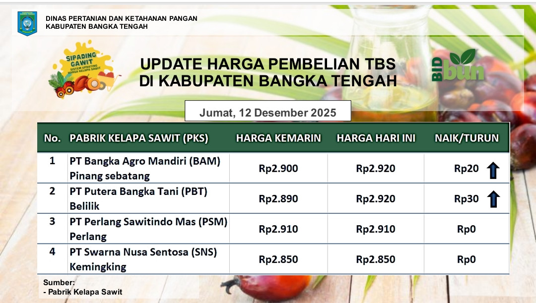 Update Harga Tandan Buah Segar (TBS) 12 Desember 2025