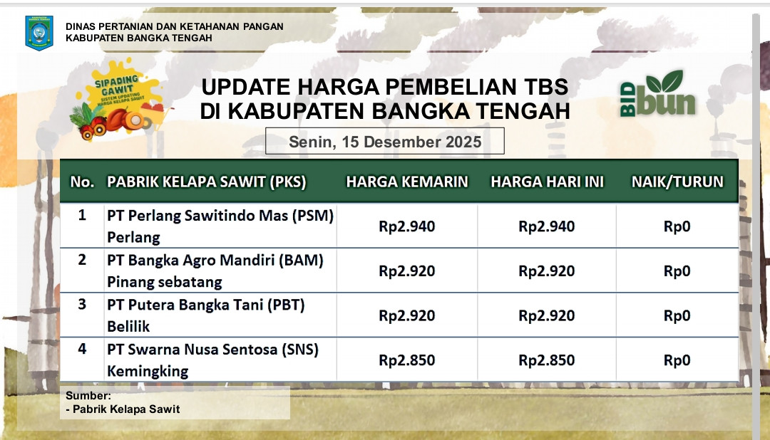 Update Harga Tandan Buah Segar (TBS) 15 Desember 2025