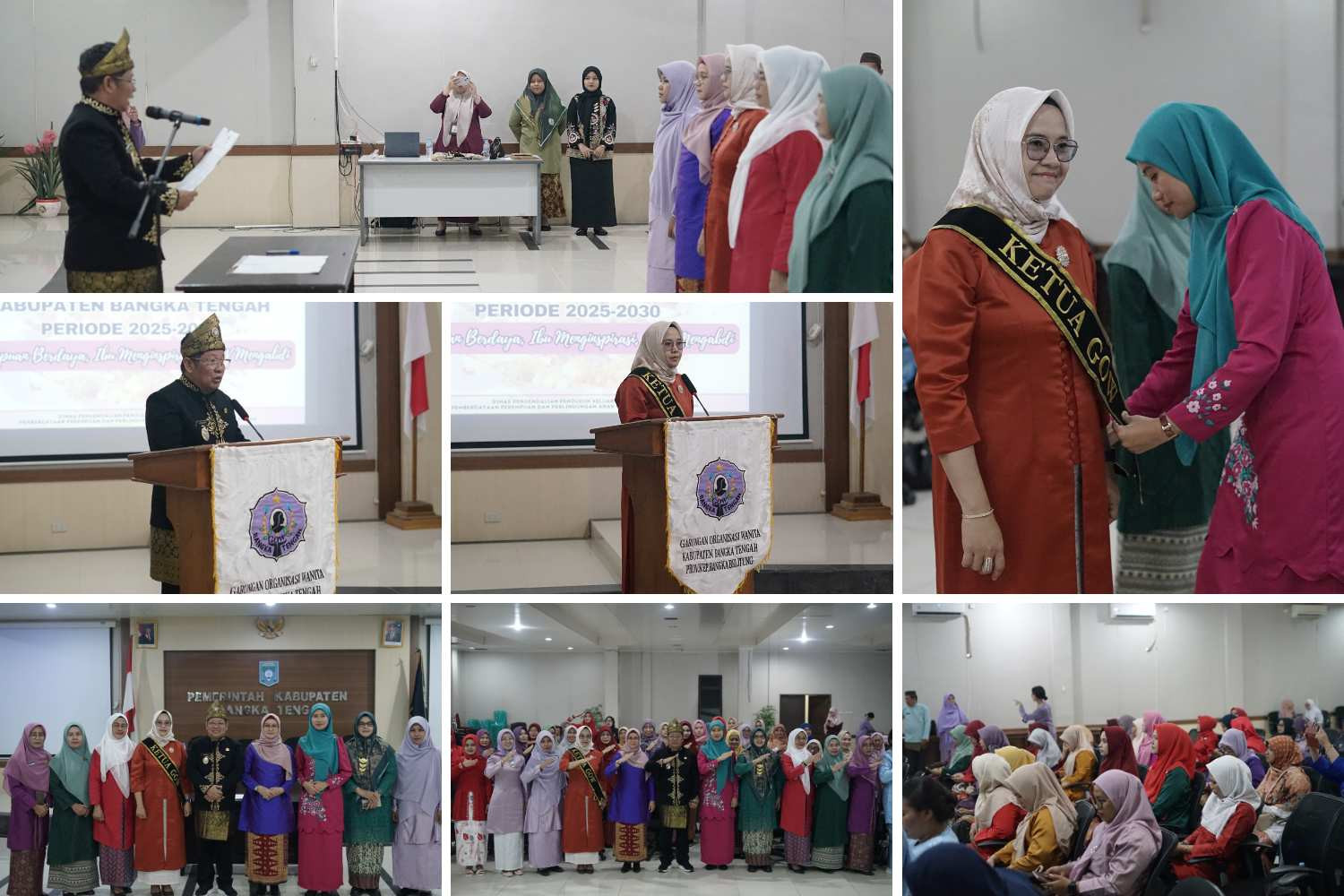 Pelantikan diawali dengan pengambilan sumpah jabatan yang dipimpin oleh Wakil Bupati Bangka Tengah, Efrianda, dilanjutkan dengan penyematan selempang secara simbolis oleh Ketua TP-PKK Bangka Tengah, Eva Algafry kepada Ketua GOW Bangka Tengah terpilih, Diah Vitaloka. Prosesi tersebut disaksikan langsung oleh Wakil Bupati dan Kepala DPPKBPPPA Bangka Tengah.