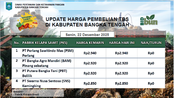 Update Harga Tandan Buah Segar (TBS) 22 Desember 2025