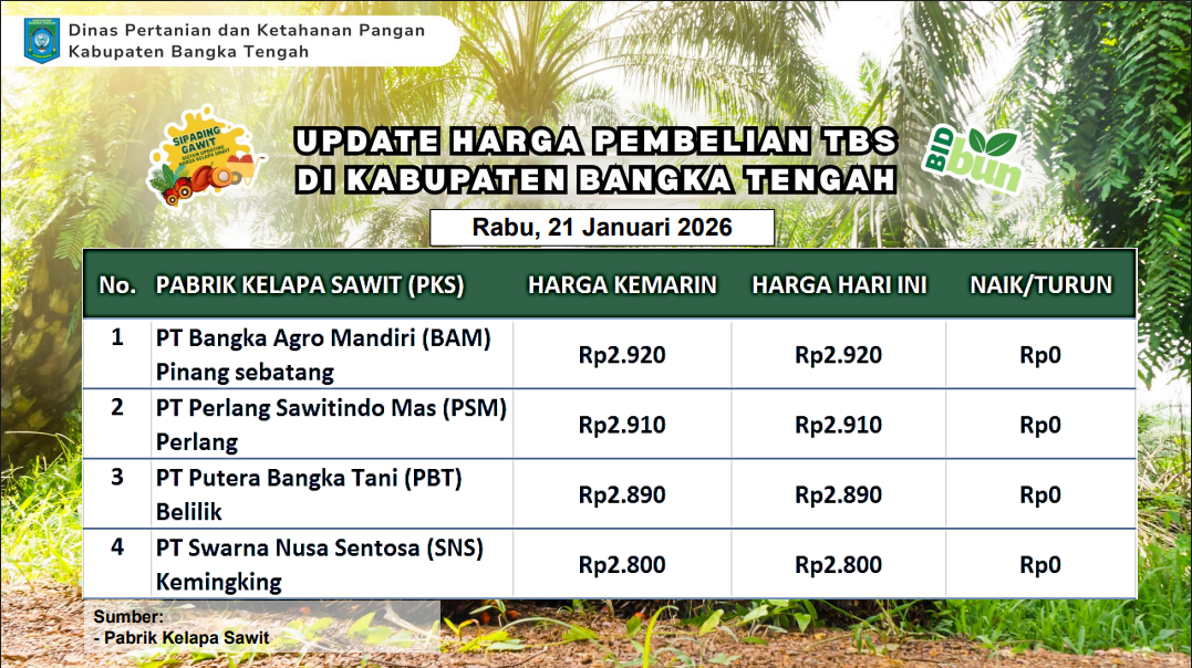 Update Harga Tandan Buah Segar (TBS) 21 Januari 2026