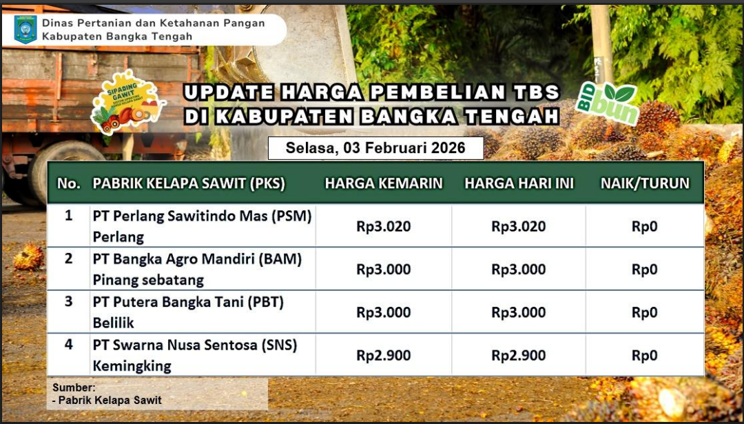 Update Harga Tandan Buah Segar (TBS) 03 Februari 2026